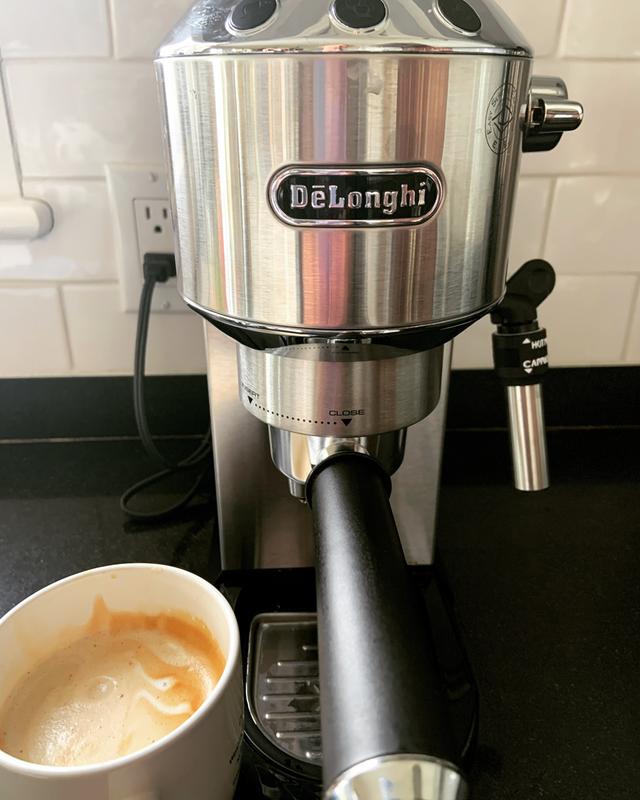 Given its compact footprint, the dedica has had to step away from the conventional styling of a pump machine and take on its own identity. Delonghi is an amazing brand in the coffee space. In all de'longhi's pump espresso coffee machines, thermoblock technology keeps the temperature under complete control. Unlike coffee machines with automatic milk frothing, this model with manual frothier gives more opportunity to the the metallic design does not go out of style. Enjoy rich coffee creations with the delonghi dedica espresso and cappuccino machine.