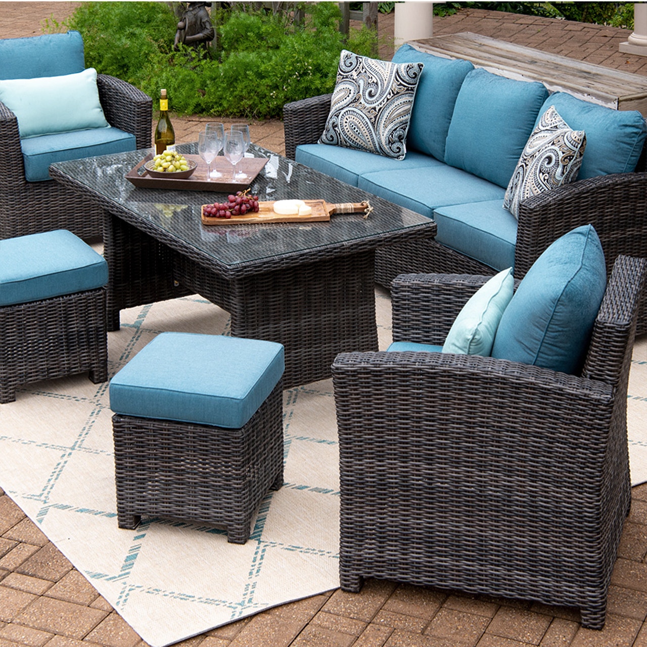 The combination of rattan framing and creamy white cushions will add a charming ambiance to your patio or garden.