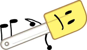 Rubber spatula has a yellow head with a white handle.