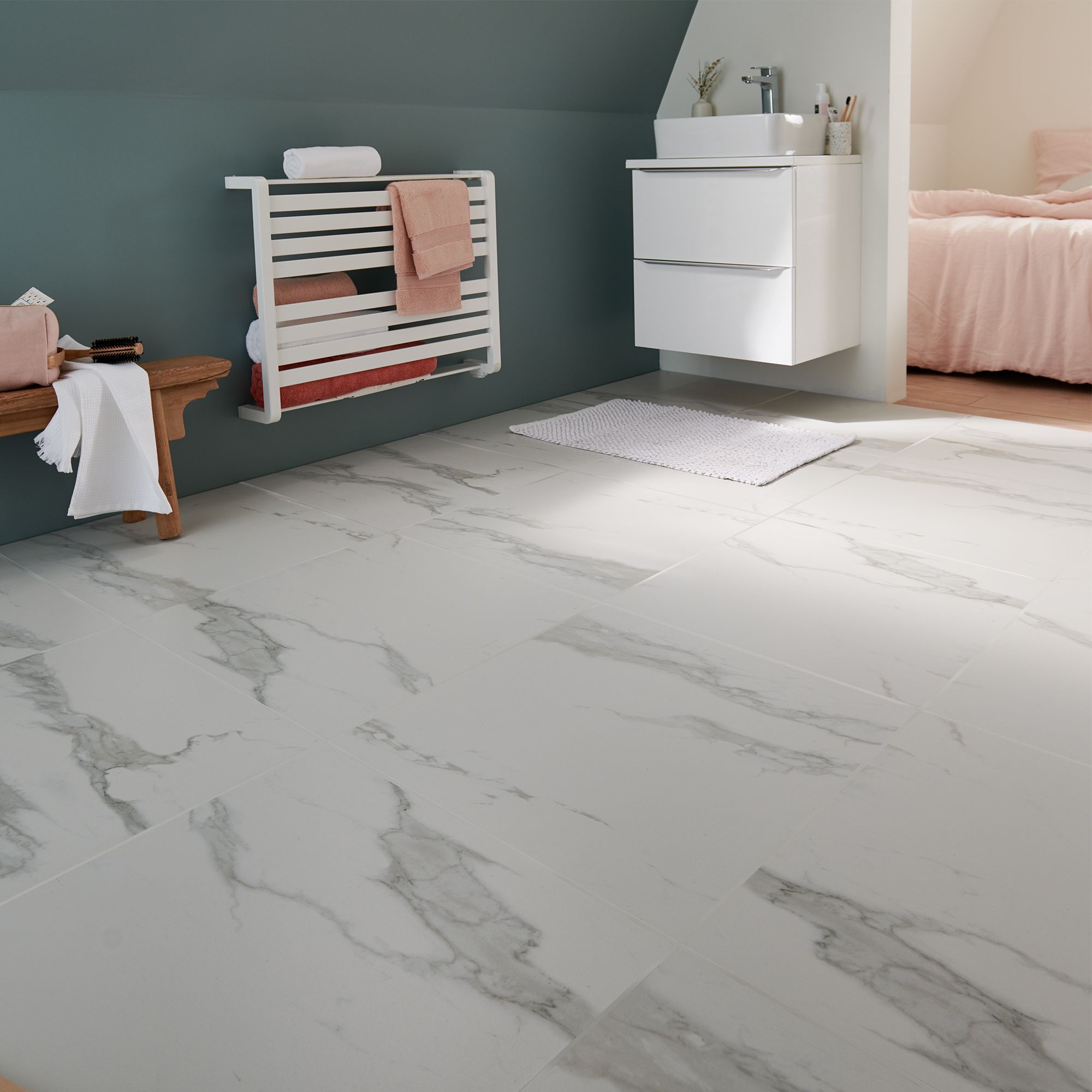 Bathroom floor tiles can add texture, pattern, colour and interest to your room.